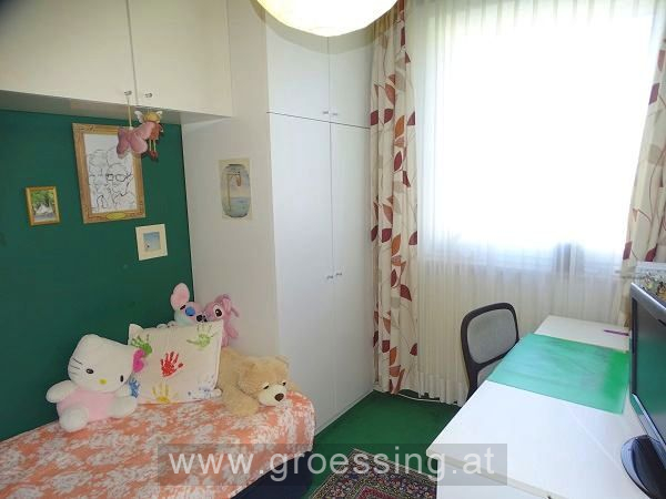 Obergeschoss: ohne Dachschrägen, großzügiges Elternschlafzimmer, 2 kleine Kinderzimmer (Kabinette) ursprünglich ein großes Schlafzimmer, geteilt durch Rigipswand, geräumiges Badezimmer mit Eckbadewanne, Waschtisch, Toilette, Bidet.