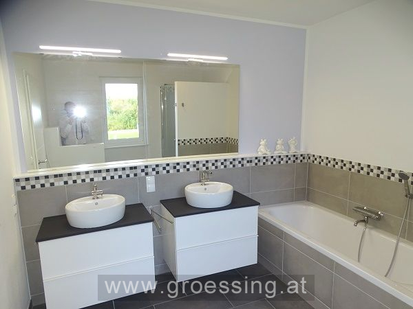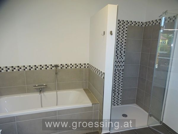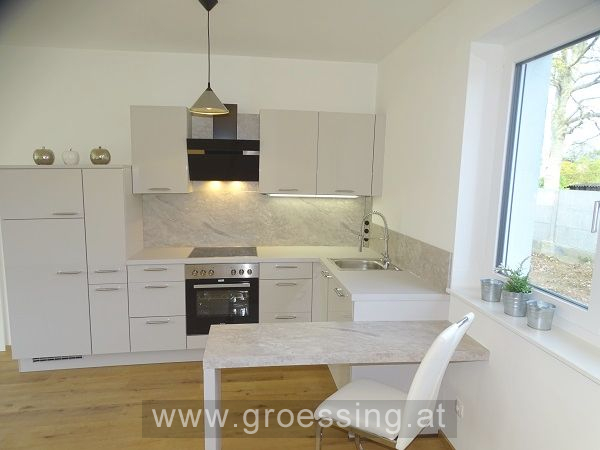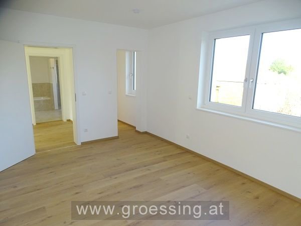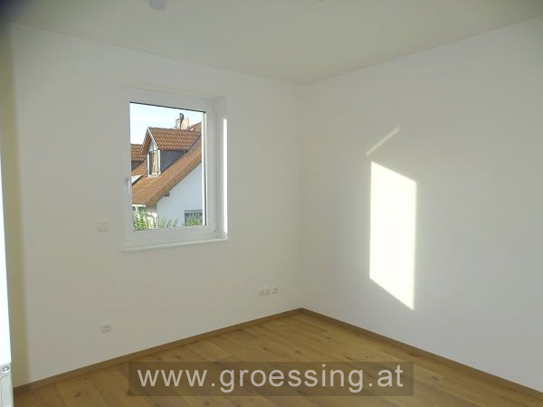 Erdgeschoss: großzügiger Eingangsbereich, Wohn-Küchenbereich (möbliert und mit E-Geräte) mit Ausgang auf die Terrasse und in den Garten (Richtung Westen), Gästeschlafzimmer (ebenfalls mit Gartenausgang), Toilette, Technikraum mit Anschlüsse für Waschmaschine, Trockner usw., Abstellfläche (unter Stiegenbereich).